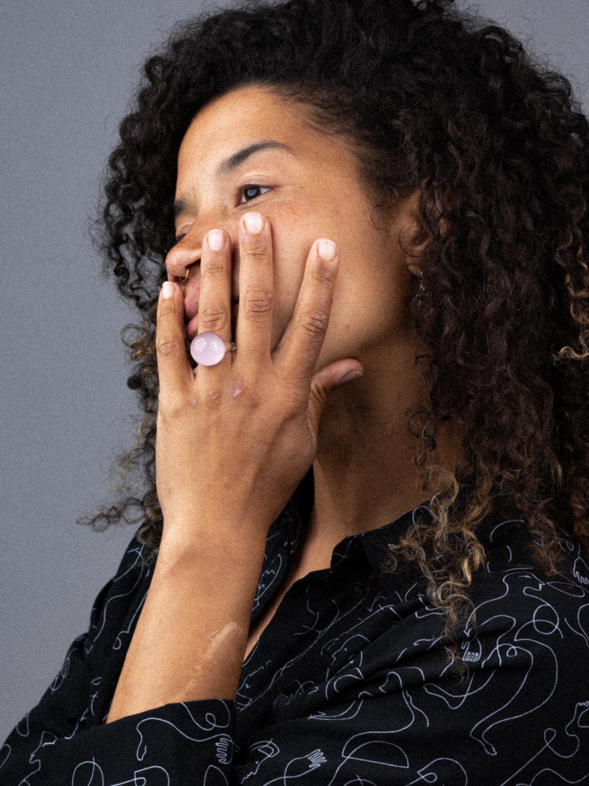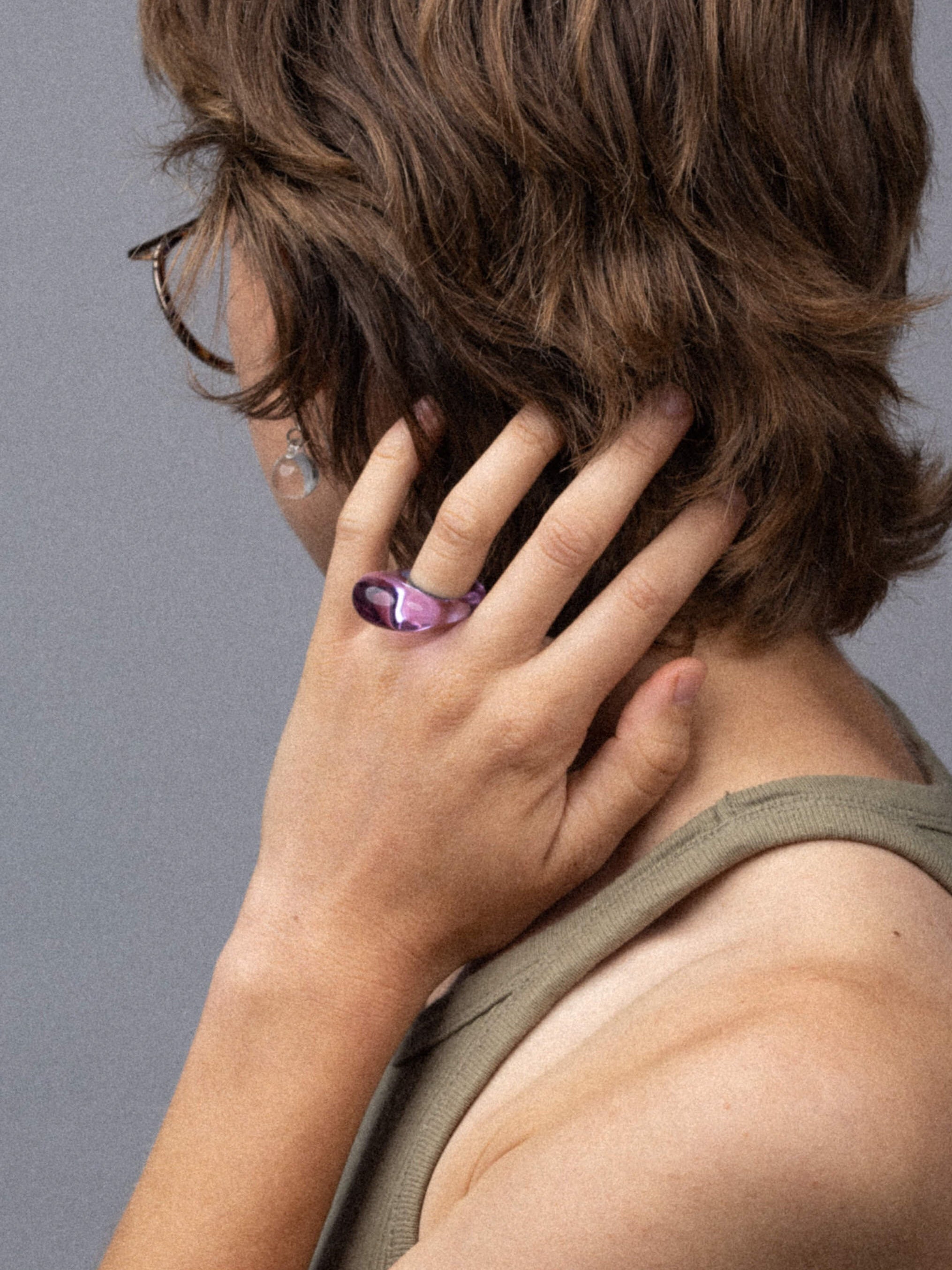I asked Sarah if she could craft a lucid ring in clear glass for me and she was kind enough to accommodate. It’s a beautiful piece and I love its organic shape. Slightly chunky and fun while still being simple and understated. Quickly added to my everyday jewellery because of its durability. Sarah also put so much care and thought into the packaging and she even included an extra little gift. Thank you so much!